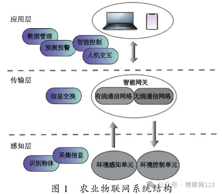 农业物联网技术体系主要分为感知层、传输层和应用层,每个层次行使不同的功能,通过有效组合完成整个农业生产过程。