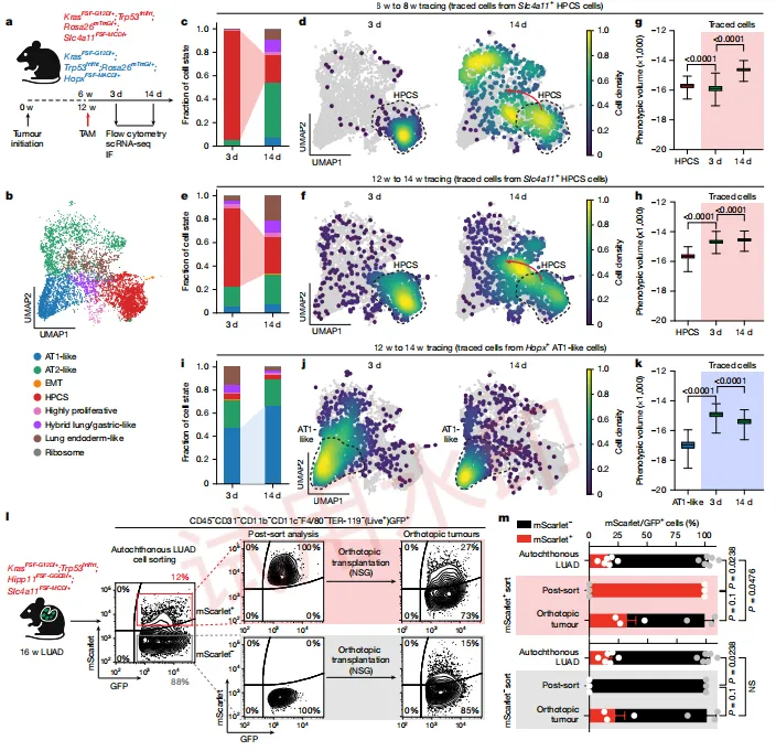 研究团队盯上了肺癌里这群最擅长“变脸”的高塑性细胞(HPCS)。他们祭出在体追踪与清除技术,像装了GPS一样精准锁定这群“幕后黑手”,并在数十只小鼠模型中实锤:一旦清除了HPCS,不仅能有效拦截肿瘤的恶性进展,连让医生头疼的化疗和靶向药耐药问题也被一举攻克,为万千耐药患者打开了全新的治疗大门!