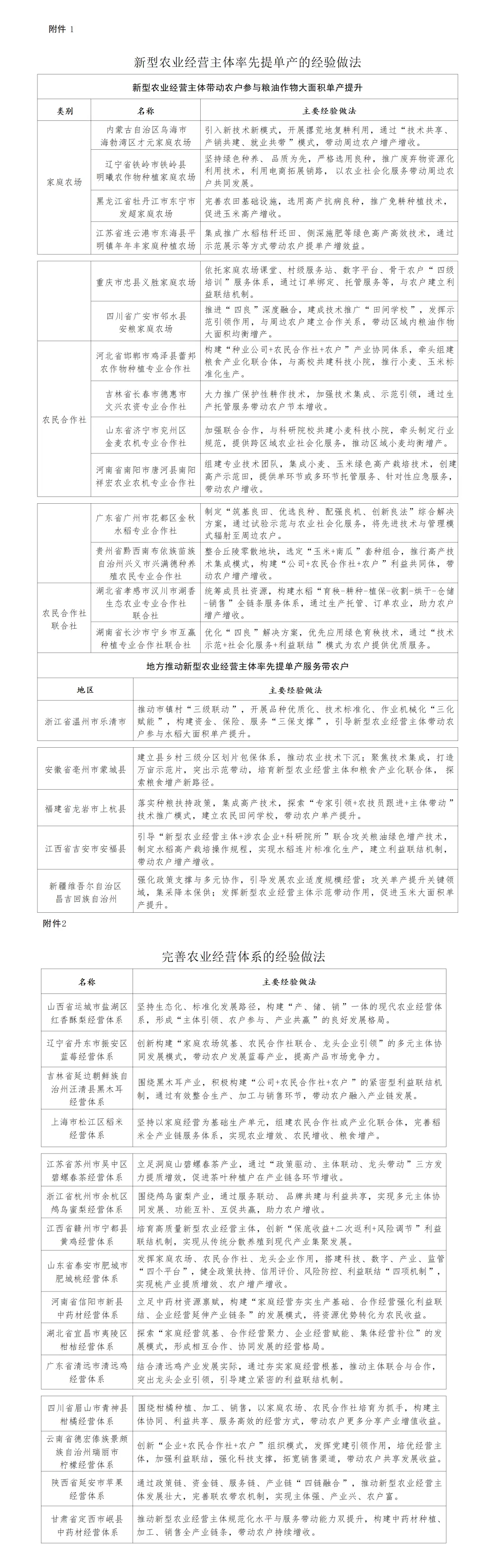 农业农村部办公厅关于推介新型农业经营主体率先提单产和完善农业经营体系经验做法的通知