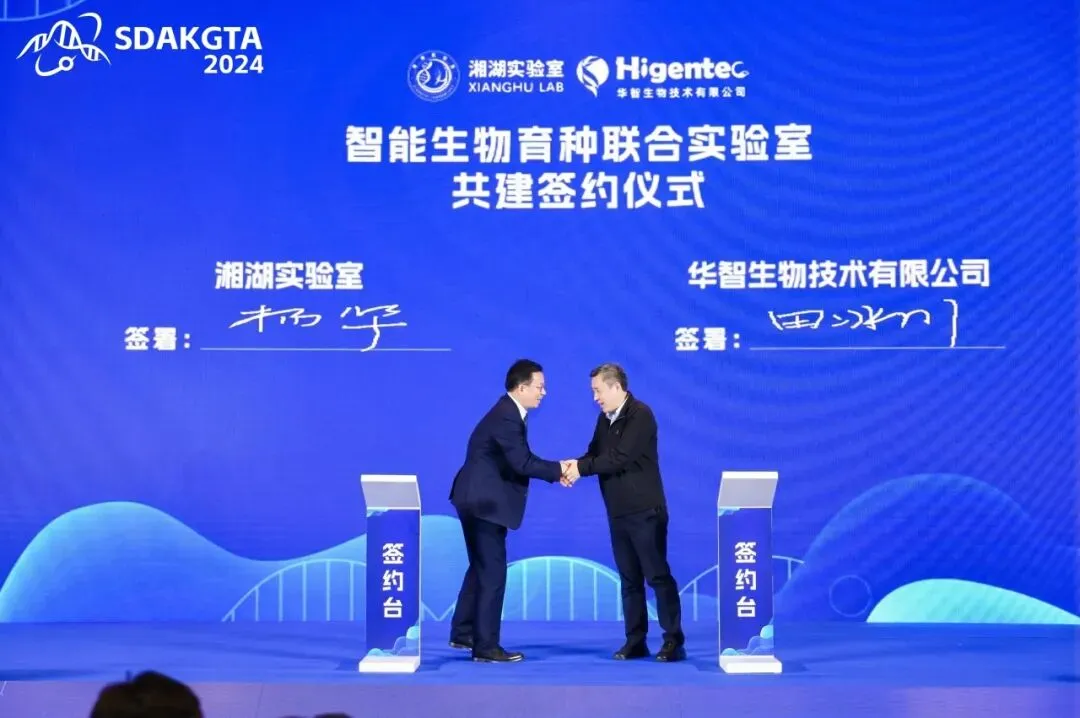 开幕式上,华智生物与湘湖实验室签约共建智能生物育种联合实验室,双方在前期合作的基础上,将围绕多组学整合分析技术与应用、AI智能育种技术研究与应用、基于大数据的全基因组选择育种三个前沿方向,协同开展技术攻关,以推动生物育种技术的智能化与精准化发展,为种业新质生产发展注入强劲动力。