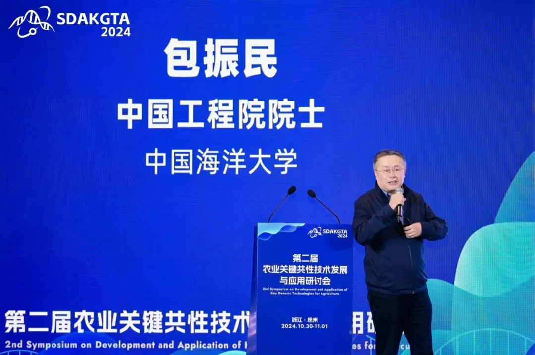 中国工程院院士、中国海洋大学包振民教授作《泛基因组IBD集群分型技术在虾贝育种的应用》的报告。