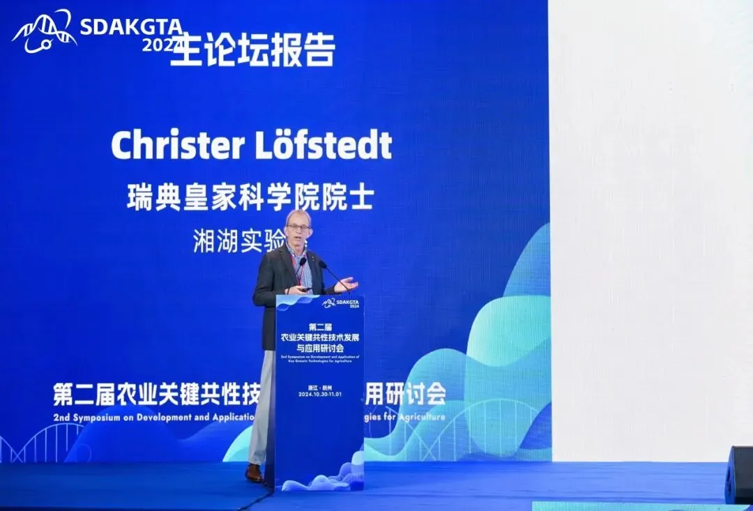 瑞典皇家科学院院士、湘湖实验室Christer Löfstedt教授作《Production of pheromones in plant and cell factories for sustainable pest control》的报告。