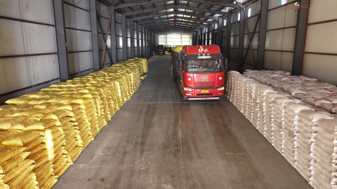 在各管理区物资储备库,运输车辆往来有序,工作人员分工协作,卸货、清点、码垛、入库一气呵成。尿素、钾肥等肥料按品类分区规整存放,专人负责防潮、防火、防霉变安全管控,严格执行入库登记与台账管理制度,确保账物相符、规范管护。