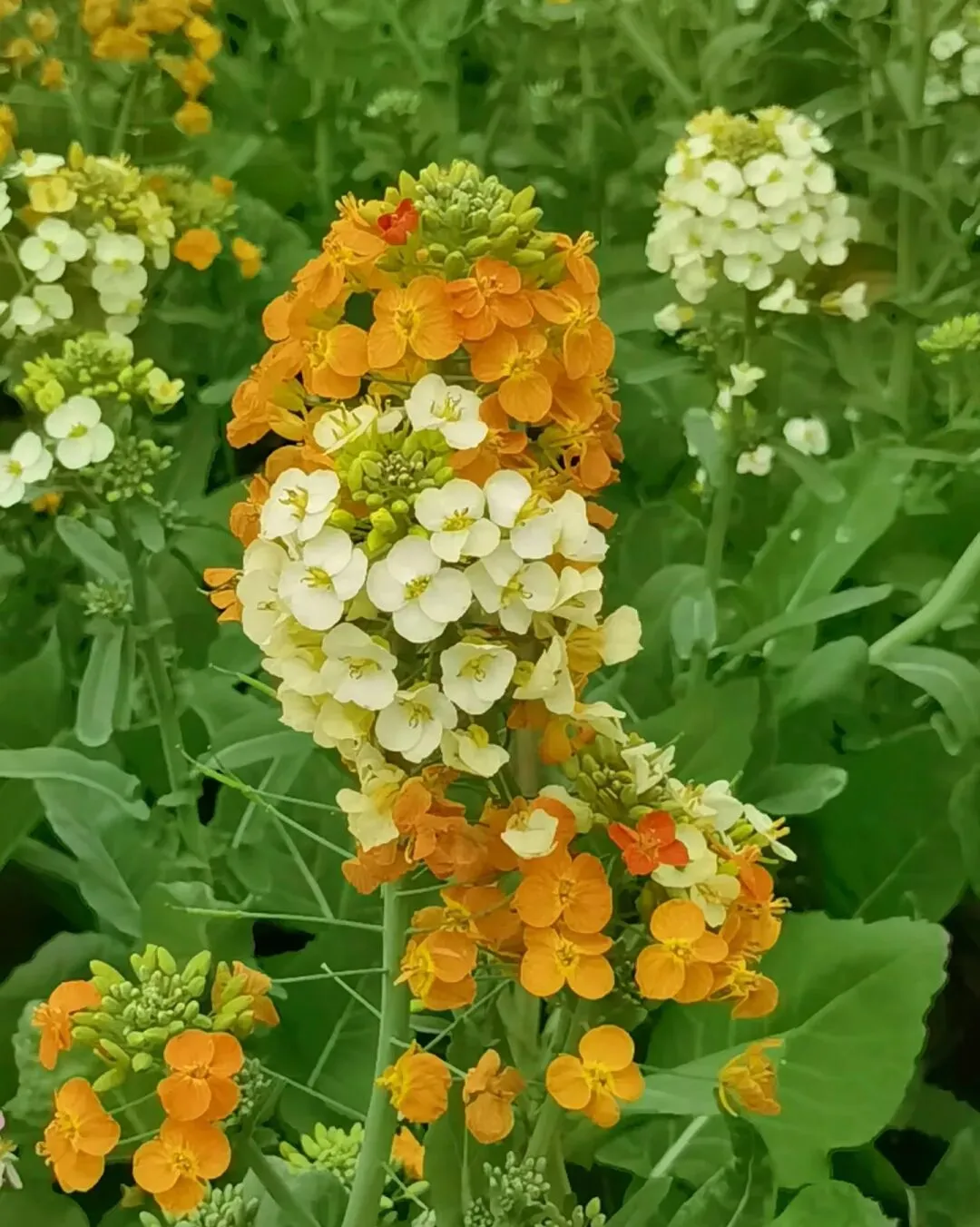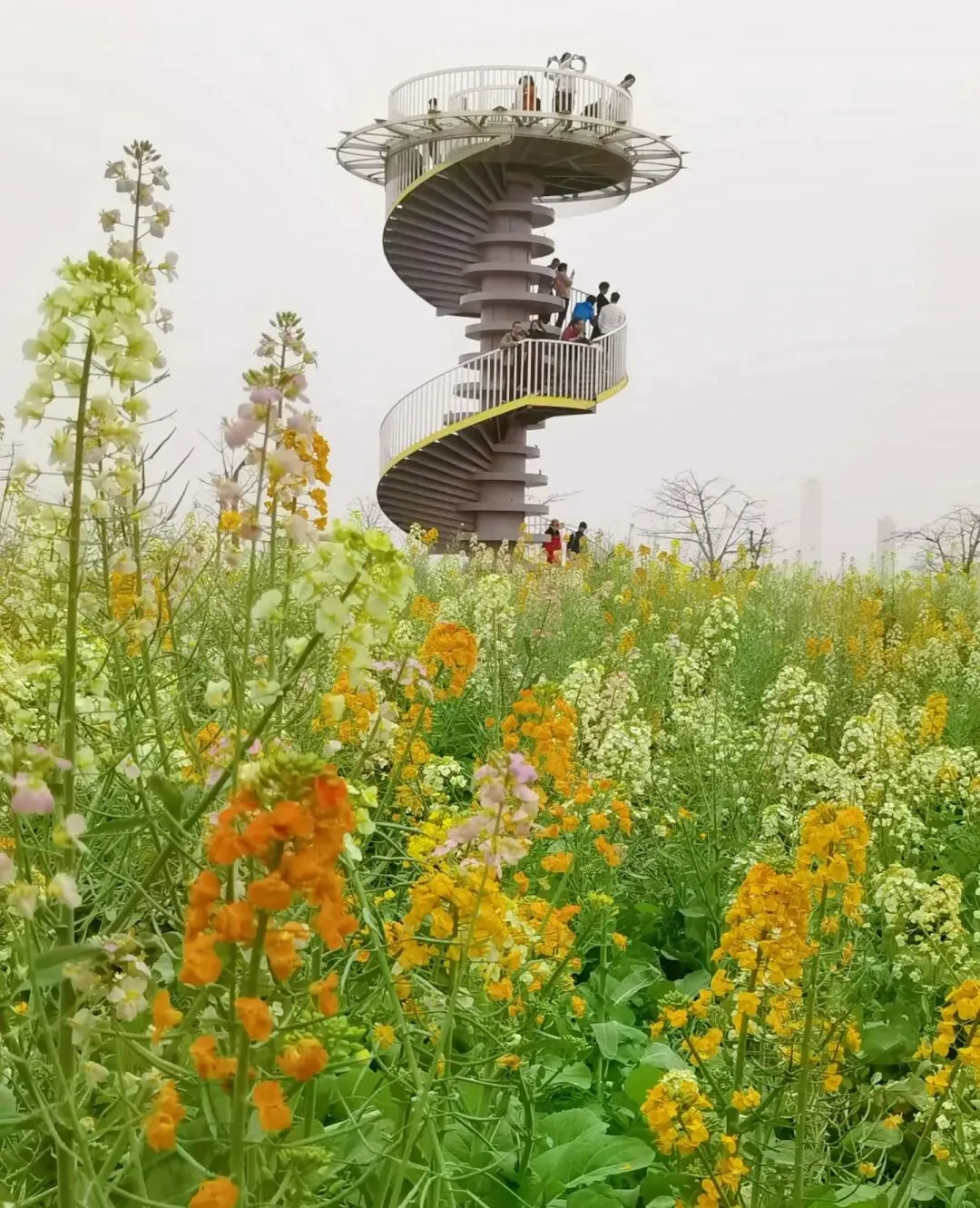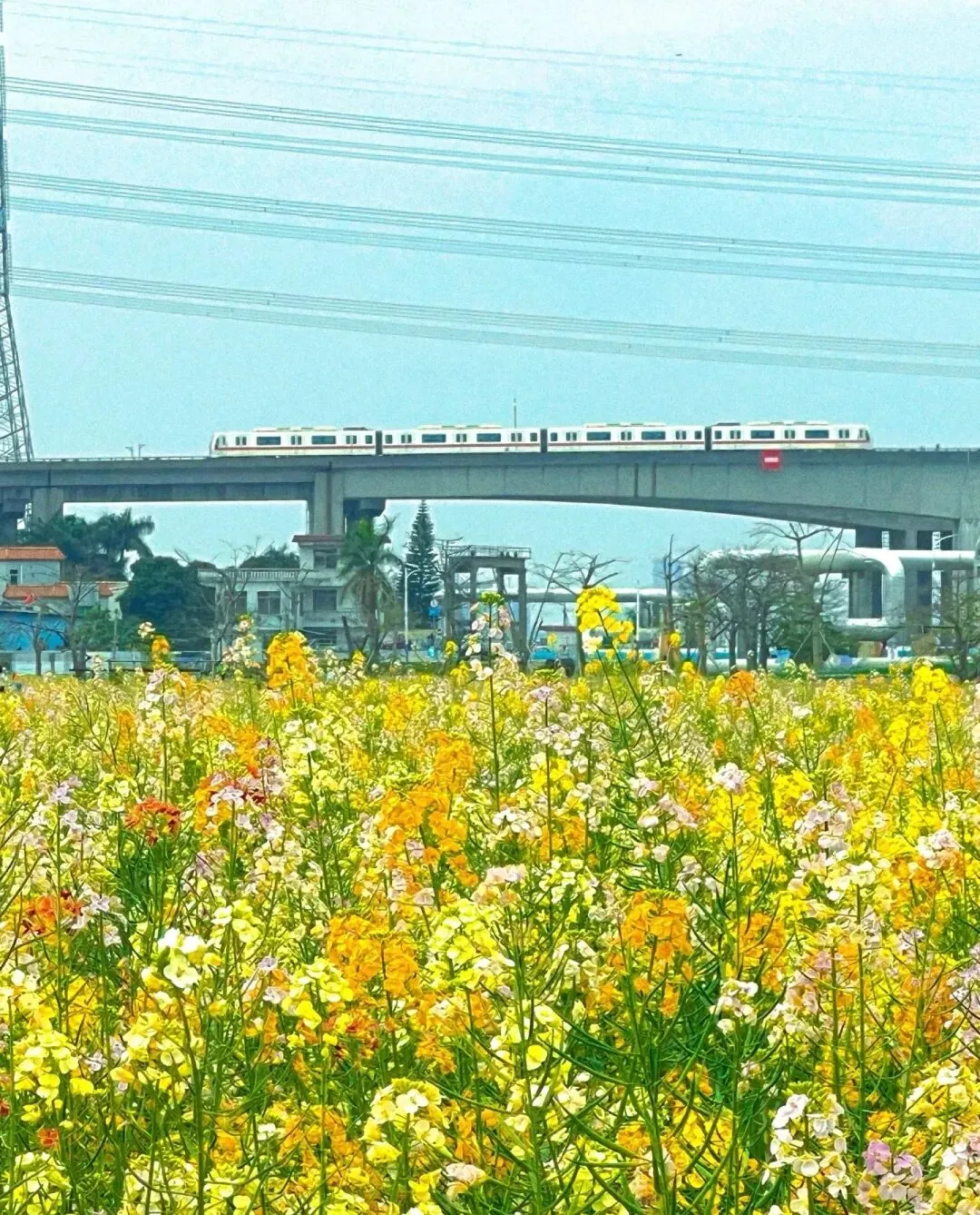 🌸这里的油菜花并非传统的金黄色,而是融入了橙黄、粉色、白色等多种色彩,宛如大自然的调色盘被打翻,绽放出绚烂的色彩。