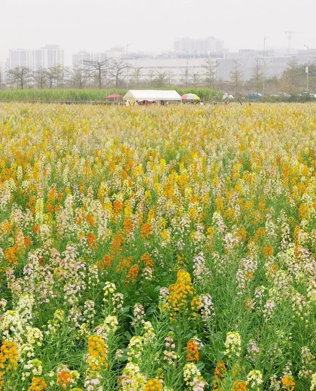 东涌七彩油菜花海位于广州市南沙区东涌镇官坦农业公园 。