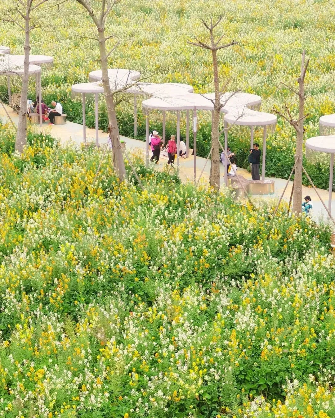 🌸花海中设有小径,方便游客漫步其中。同时,风车与花海相映成趣,为景点增添了一份浪漫与诗意。❗️❗️七彩油菜花的最佳观赏时间:每年2月至3月初为盛花期,这时色彩最浓郁。(📷拍照非常出片)