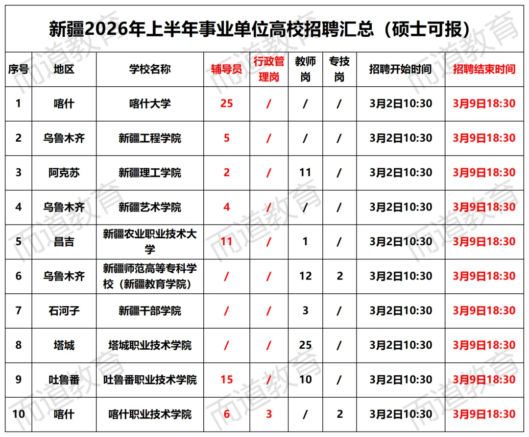 具体岗位条件详见《新疆维吾尔自治区2026年上半年面向社会公开招聘事业单位工作人员分类考试岗位表》(以下简称《岗位表》)(附件1)。