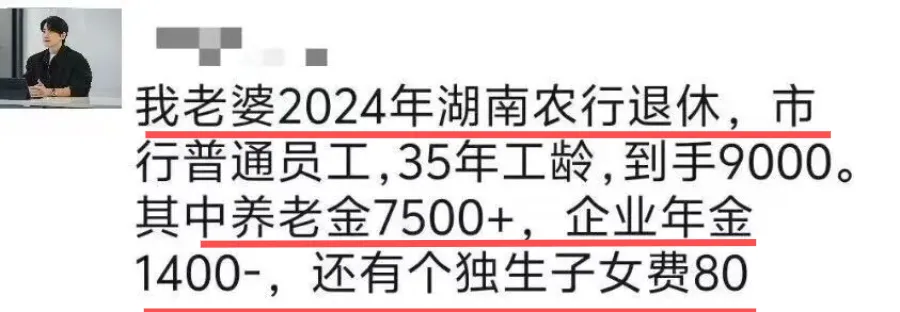 看到一位湖南网友分享,爱人在农行市分行干了 35 年普通员工,没当什么领导,退休后每月到手 9000 块,养老金 7500 多,企业年金 1400。很多人一看就羡慕了,这就是普通打工人最踏实的天花板。