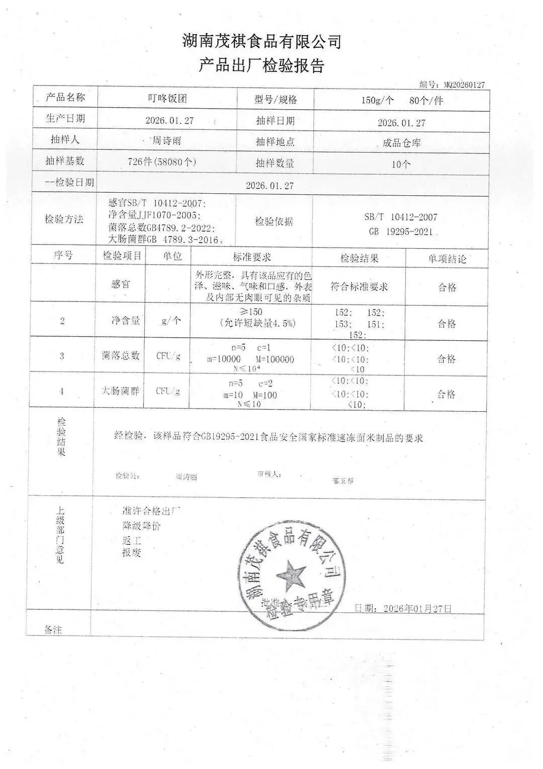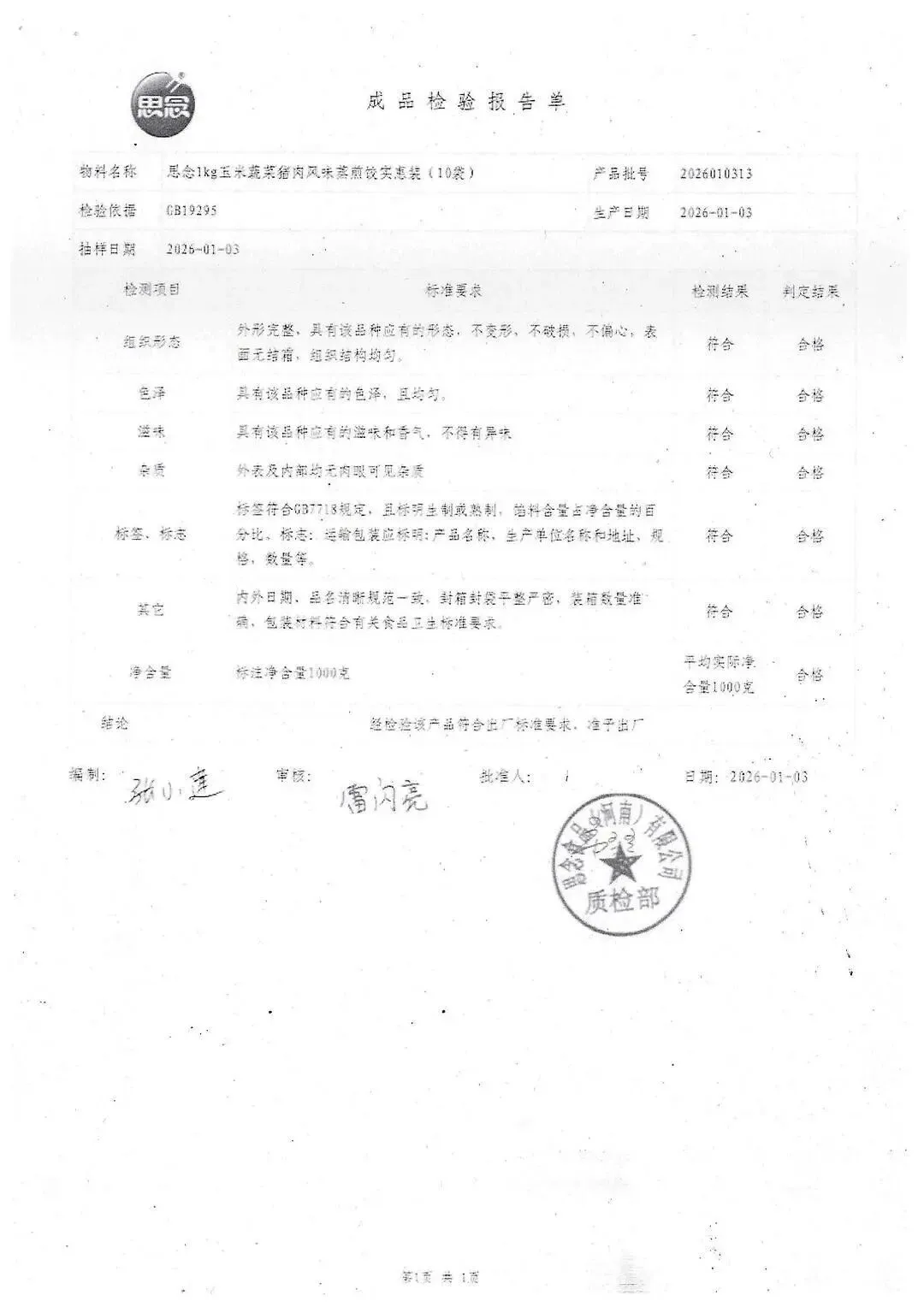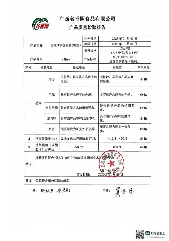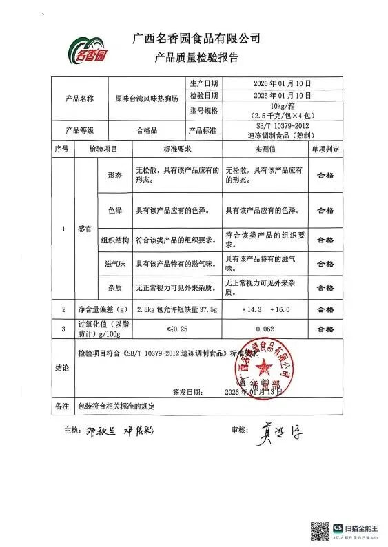 >金浦供应链&禾美农业-03月02日冻品、水饺、丸子、热狗、腊肠检测报告