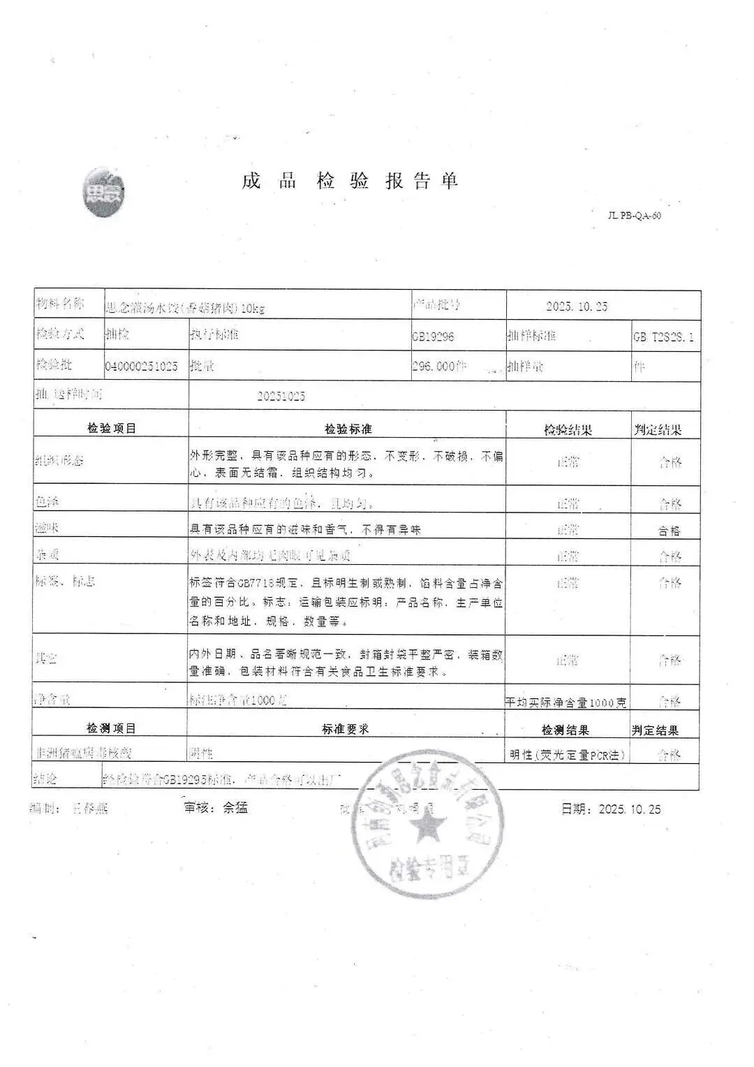 冻品、水饺、丸子、热狗、腊肠检测报告