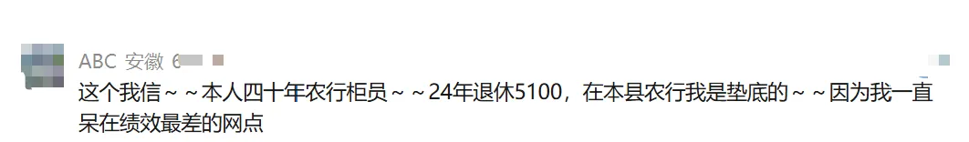 一般来说,以他的工龄时间,又是2024年退休的,不少农业银行的退休员工多为6000元以上,特别是在江浙沪等经济发达地区,月入上万都是有可能。但如果他反馈的情况为实,那么就说明支行网点的经营效益会影响员工社保公积金的缴存。就像他在一直绩效最差的网点,社保公积金、企业年金应该就缴得比较少了。因为这部分属于人工成本,网点效益不好便要进行“降本增效”,直接降低月度工资收入会严重挫伤员工积极性,那么就减少社保公积金、企业年金的缴纳。提供有价值的银行资讯,关注一下↓↓↓