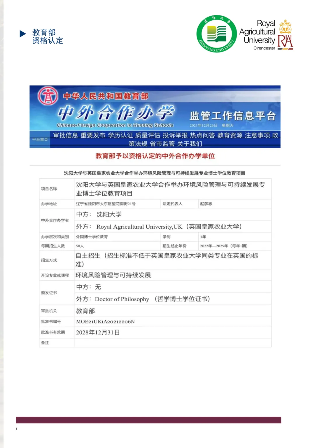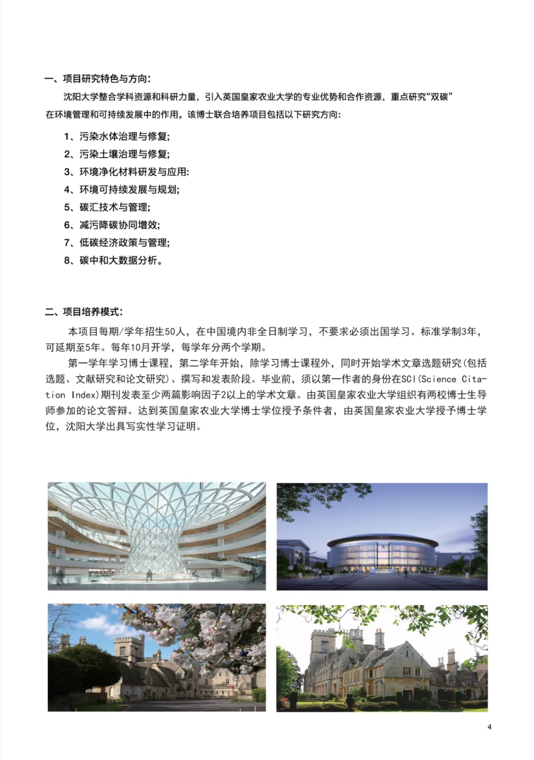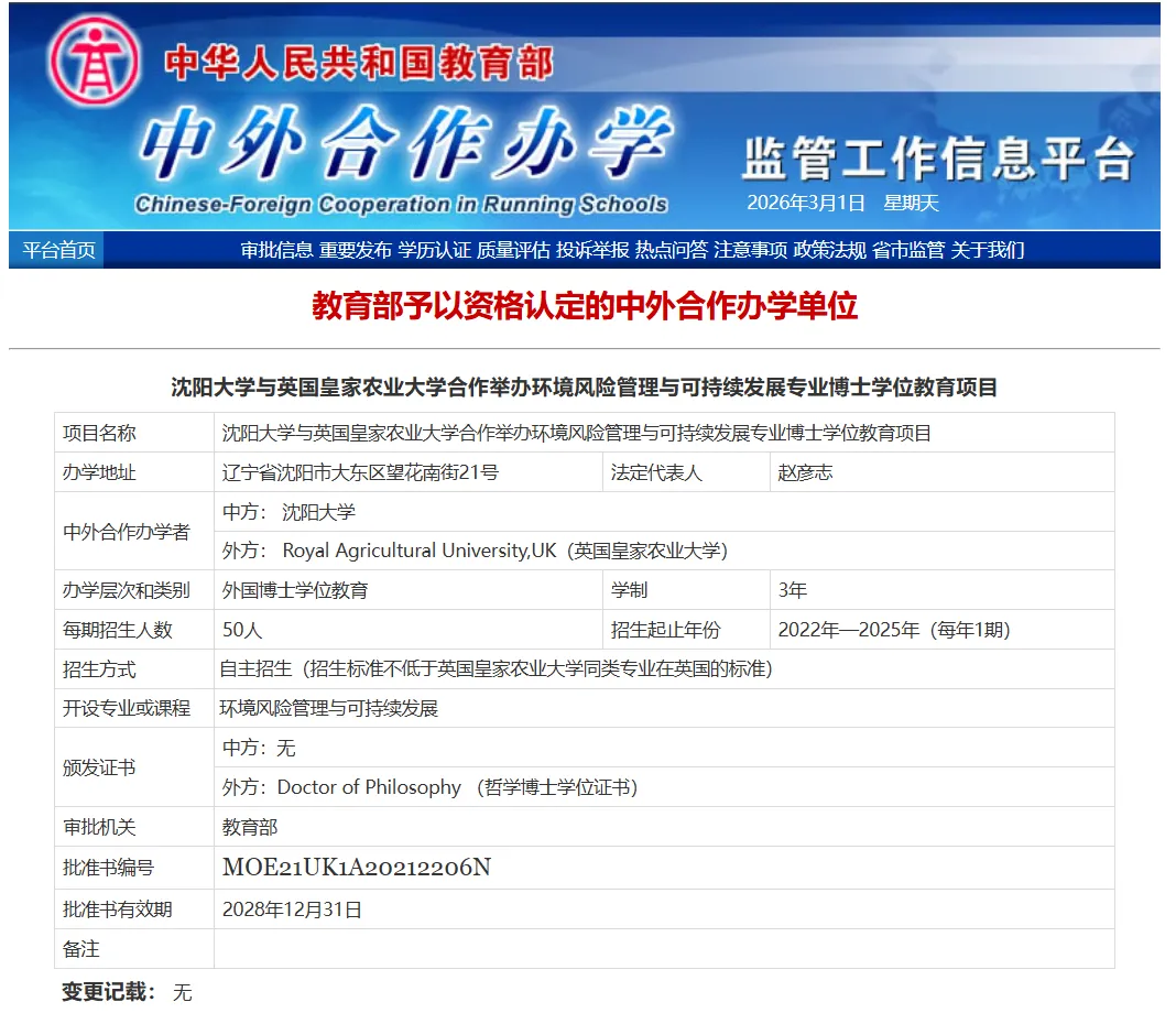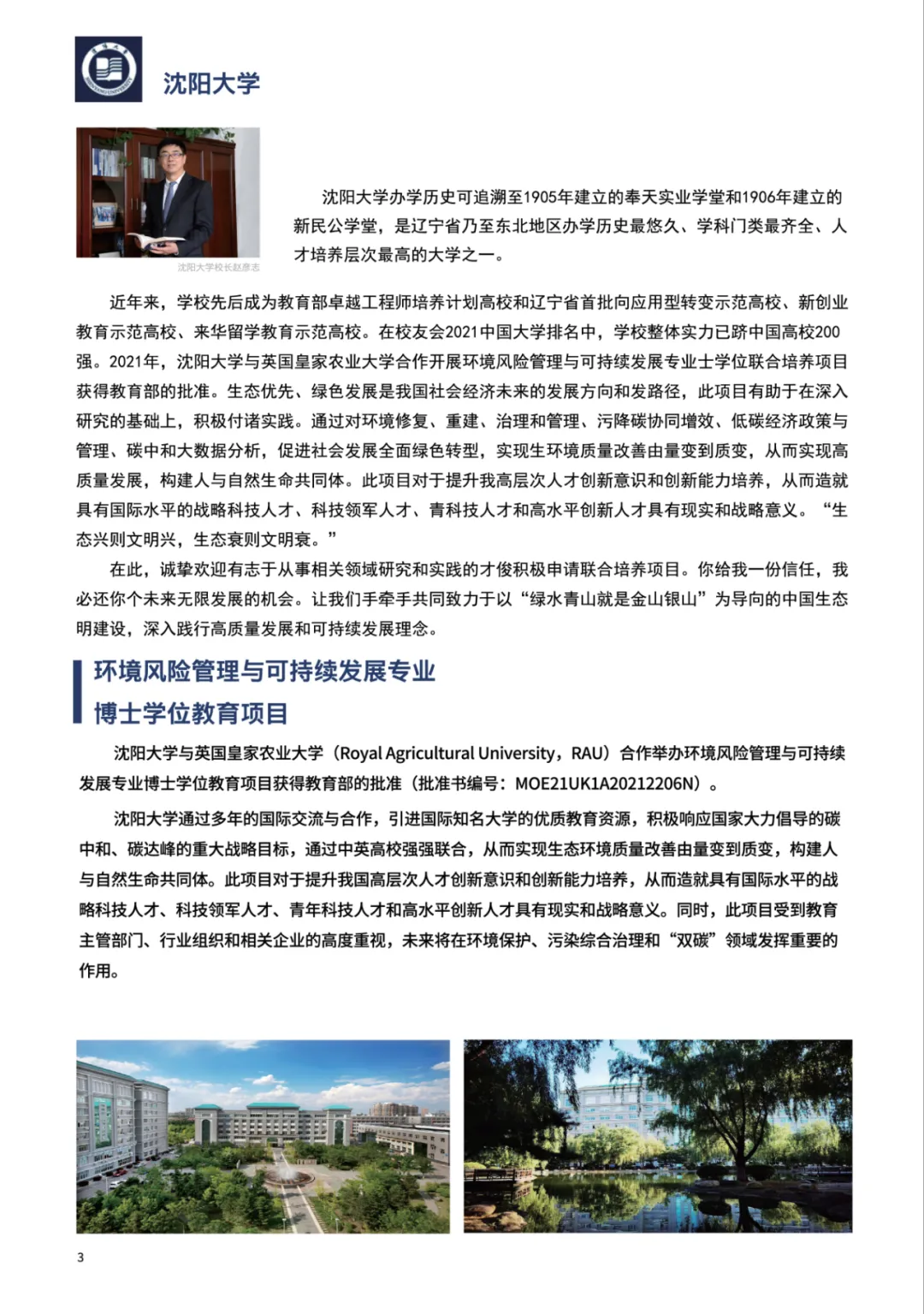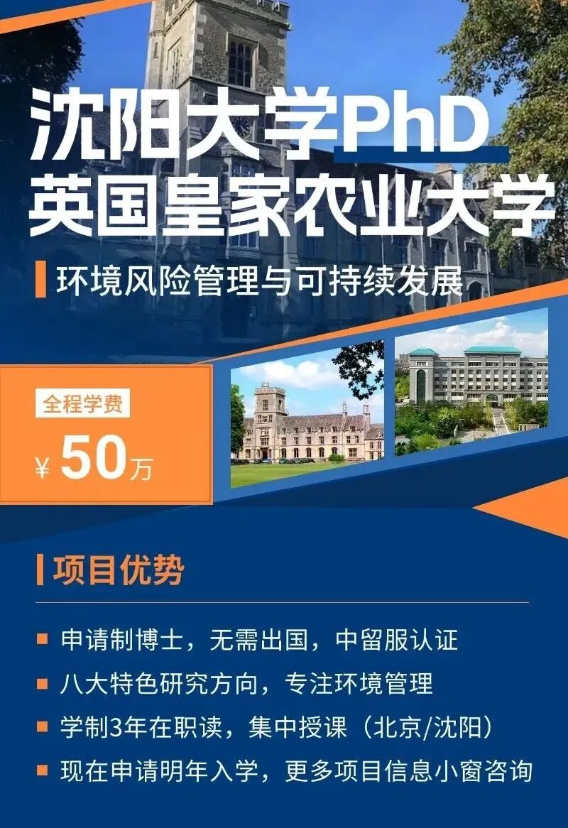 无需出国!沈阳大学与英国皇家农业大学合作举办环境风险管理与可持续发展专业博士招生简章