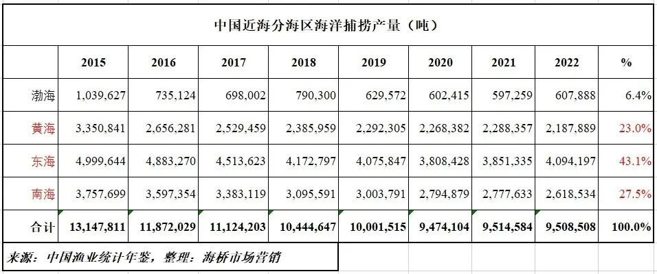 中国近海头足类分省捕捞产量(海桥营销整理)