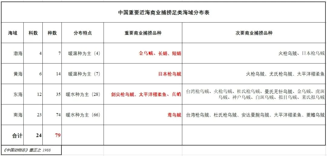 中国近海重要商业捕捞头足类分布图(海桥整理)
