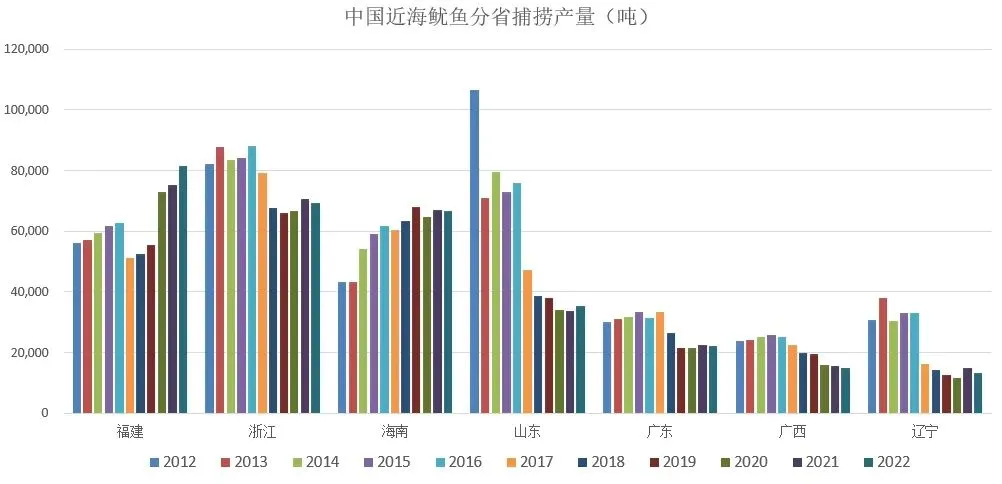 中国近海鱿鱼分省捕捞产量(海桥营销整理)