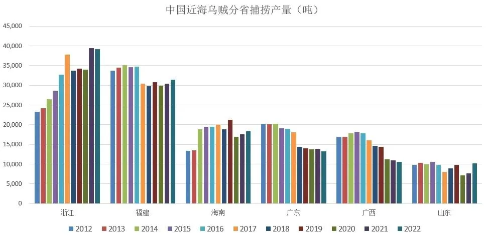 中国近海乌贼分省捕捞产量(海桥营销整理)
