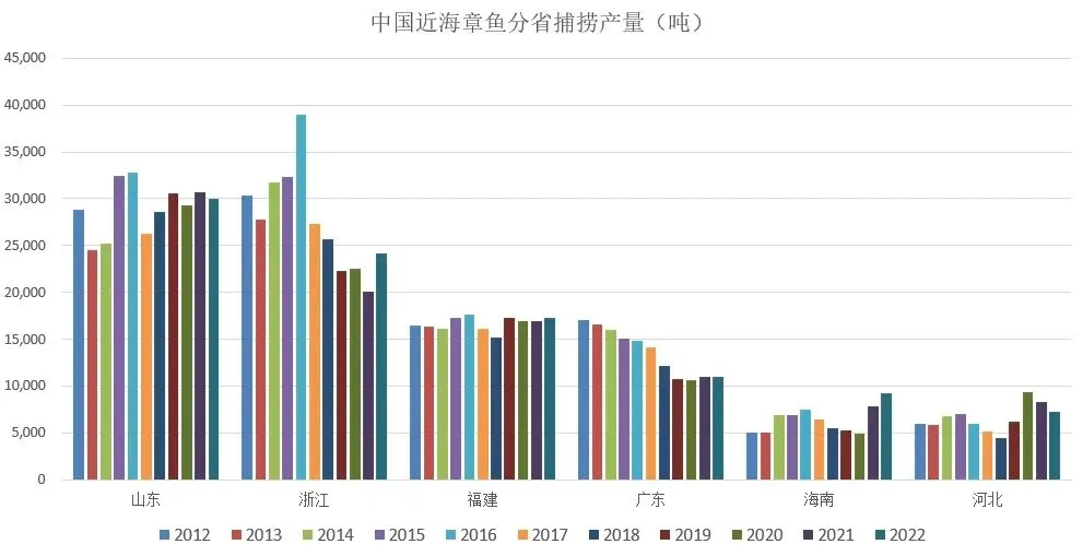 中国近海章鱼分省捕捞产量(海桥营销整理)