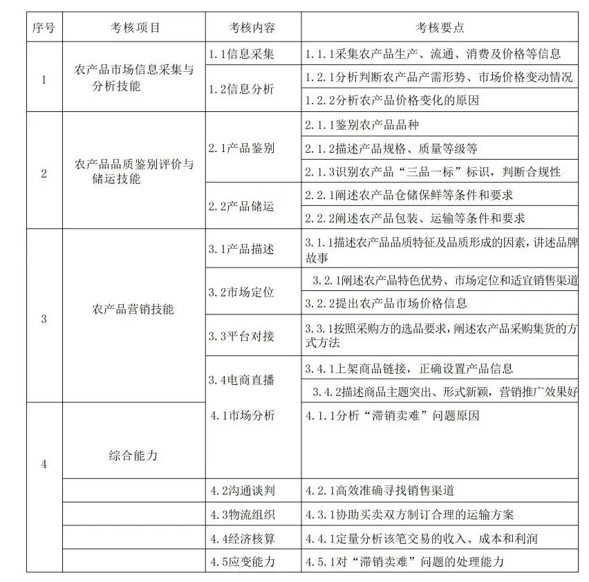 可以说,没有千万农产品经纪人的深耕,农产品就难以从田间快速走向餐桌,“小农户”就难以融入现代农业体系,农民“种得好卖不出、卖不上价”的痛点也难以真正解决。他们是农业流通的“毛细血管”,是乡村振兴中最贴近基层、最具活力的职业力量。三、职业标准:五级技能阶梯,赛事对标高级工,专业能力有明确标尺