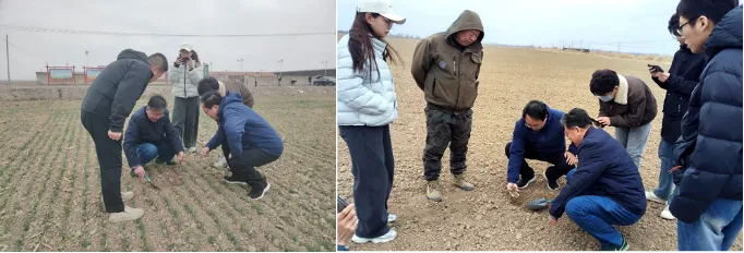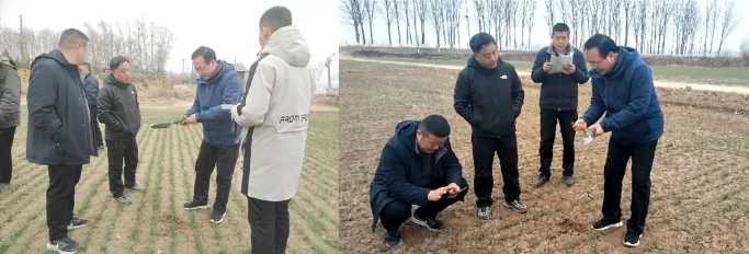 管理建议:当前管理以“促转化、保群体”为核心,气温稳定回升后,尽早利用滴灌、喷灌或微喷灌每亩补水10-15立方米,并随水亩追施尿素6-8公斤,促进弱苗转壮,避免大水漫灌导致地温骤降而抑制麦苗生长。