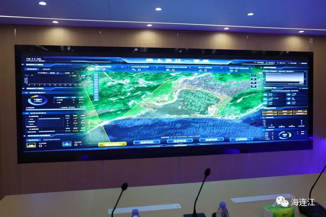 会前,陈劲松一行在县海渔局察看了连江县海上智慧综合管理平台运行情况。