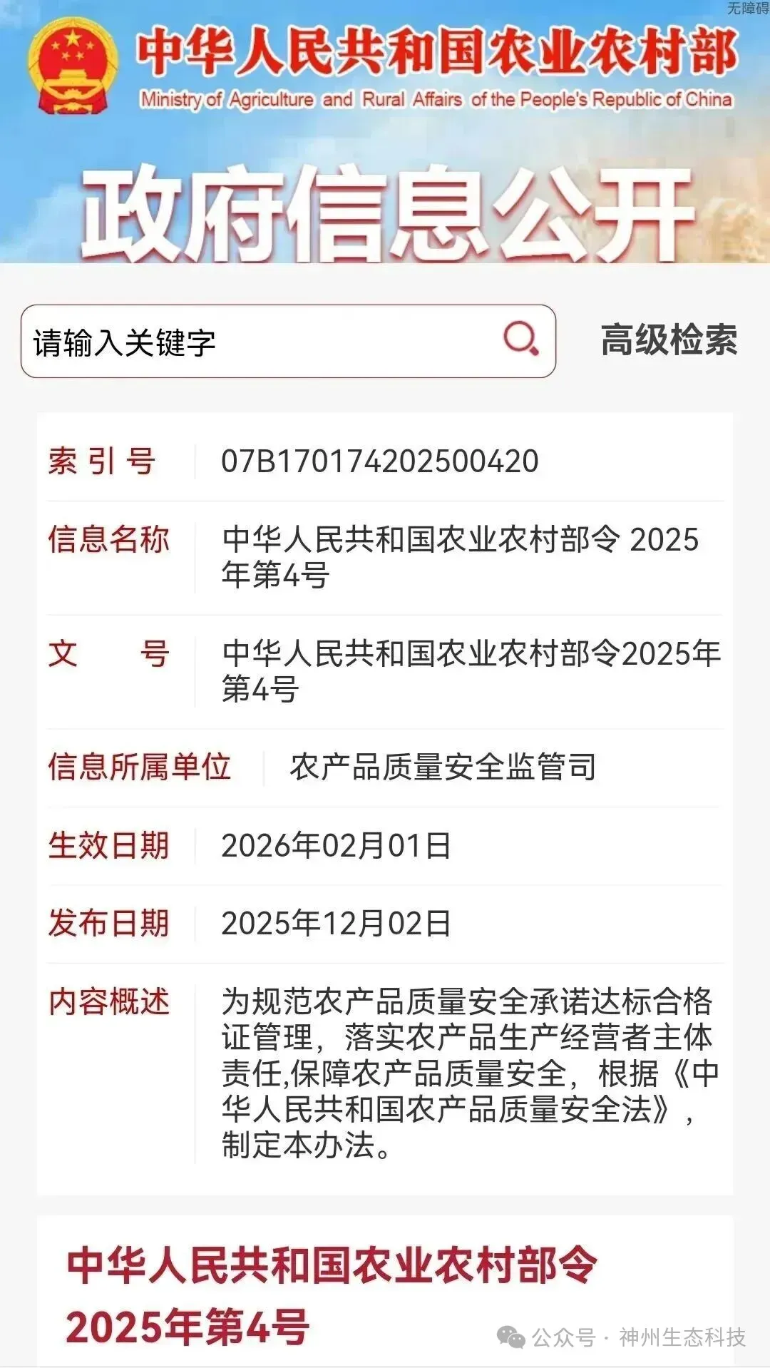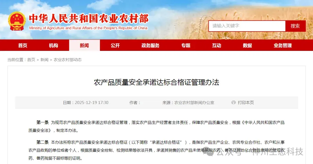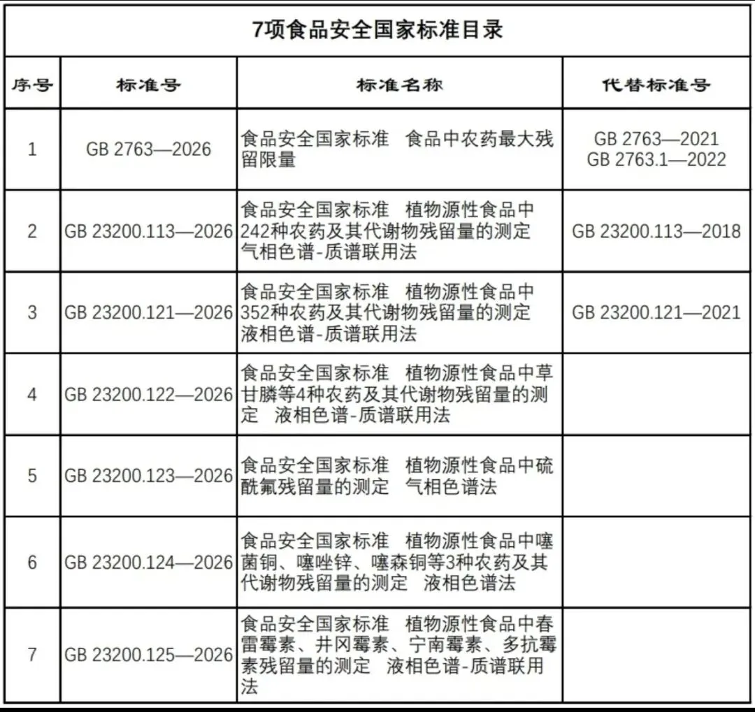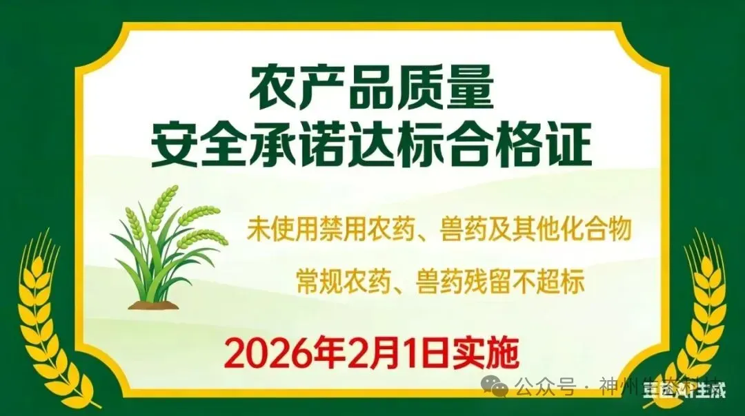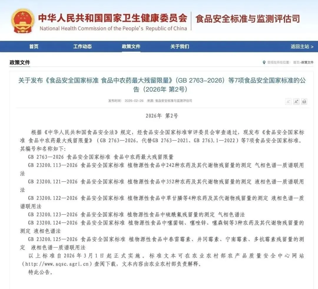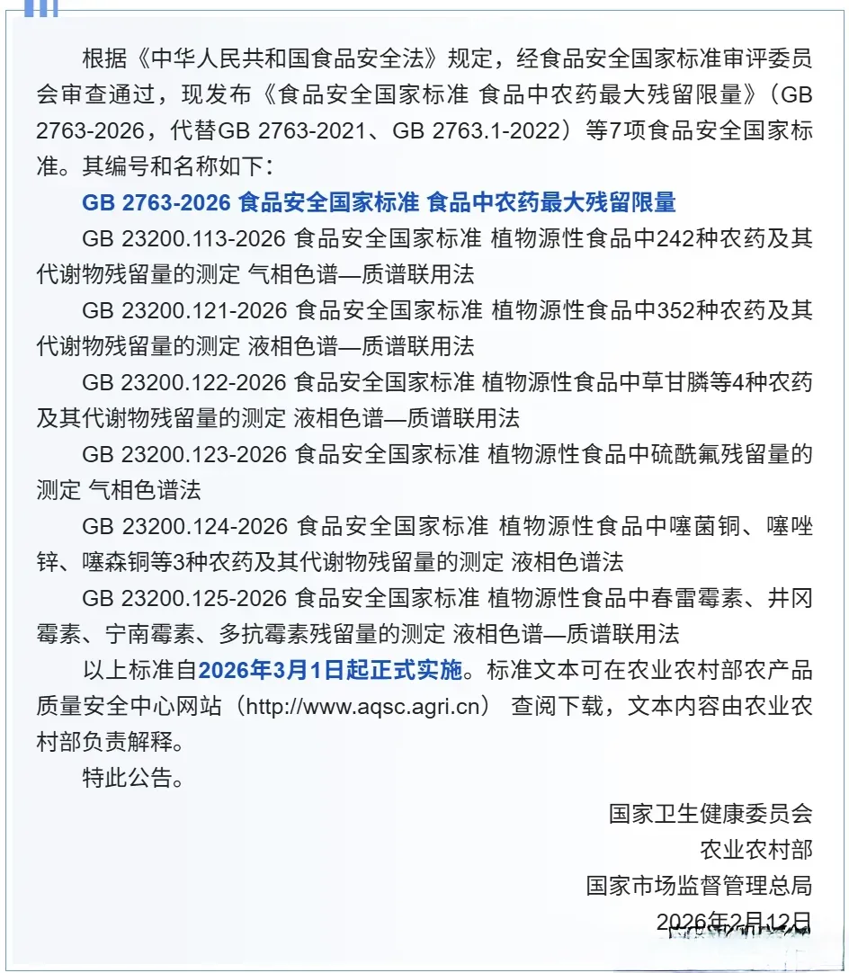 《食品安全国家标准 食品中农药最大残留限量》(GB2763-2026)《农产品质量安全承诺达标合格证》