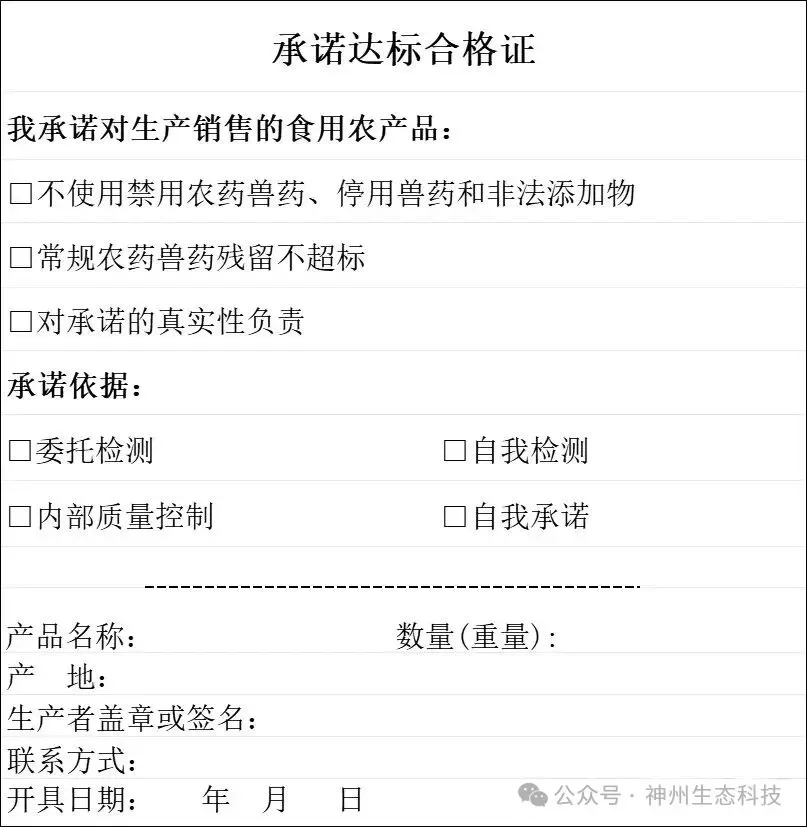 农产品质量安全承诺达标合格证是一份由生产者或收购方为自己销售的农产品开具的安全保证书。