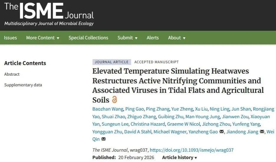 在全球气候变化日益严峻的背景下,极端热浪事件频发且强度不断攀升,已成为影响生态系统稳定性的关键因素。热浪往往带来持续数天甚至数月的高温,温度可高达35至50摄氏度,深刻改变着土壤微生物的代谢活性、群落结构及其驱动的地球化学循环过程。作为全球氮循环的核心引擎,硝化微生物每年氧化超过20亿吨氨氮,其对环境变化的响应直接关系到生态系统的功能与健康。然而,在极端高温胁迫下,这些关键微生物群落如何演变,以及与其共生的病毒如何协同响应,长期以来缺乏系统深入的研究。