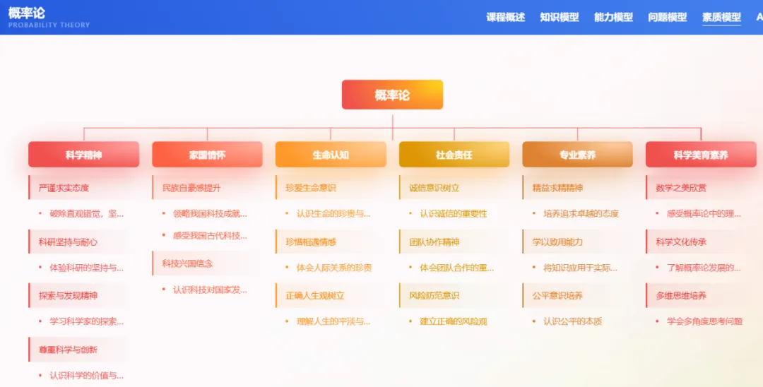 思政图谱挖掘了43个思政点,将科学精神、家国情怀、社会责任等素养融入知识教学,实现价值引领与知识传授的有机融合。