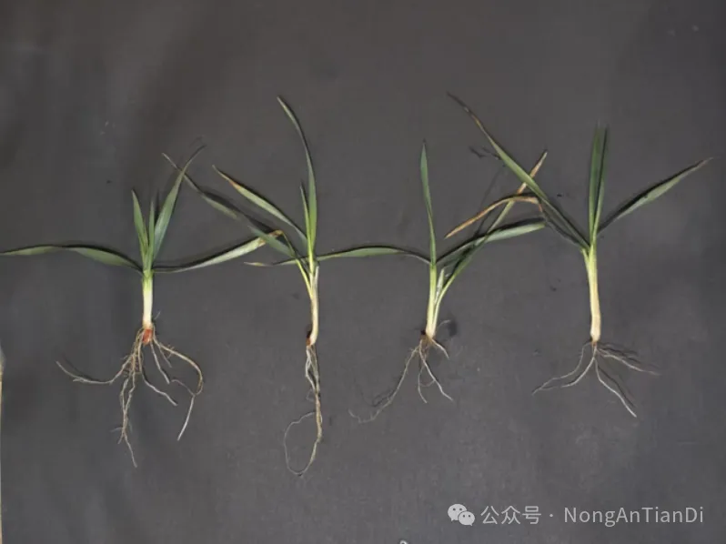 小麦品种为‘农大761’,2025年10月30日采用12.5 cm等行距播种,播量17.5 kg/亩,底肥亩施30 kg复合肥(N-P2O5-K2O 18-21-5)。冬前进行了冬灌,未进行镇压。小麦个体3叶1心,单株次生根2.3条,群体茎数52.3万/亩。