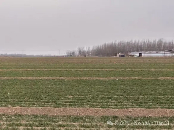 小麦品种为‘马兰1号’与‘马兰6号’,2025年11月1日采用12.5cm等行距播种,播量23.5 kg/亩。播后未镇压且冬前未灌冻水。目前小麦个体为3叶1心,次生根1.5条,群体总茎数 43.5万/亩,属三类苗。