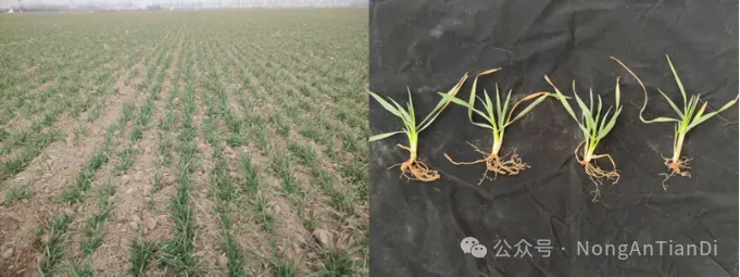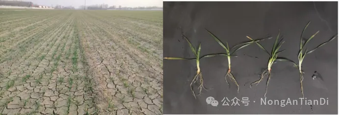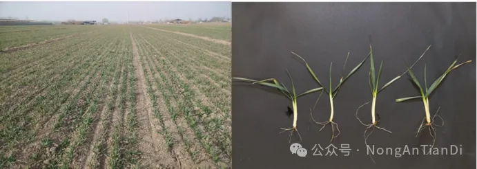 该地块播种较浅,部分植株分蘖节处于干土层,应及时关注天气变化,防御低温危害。
