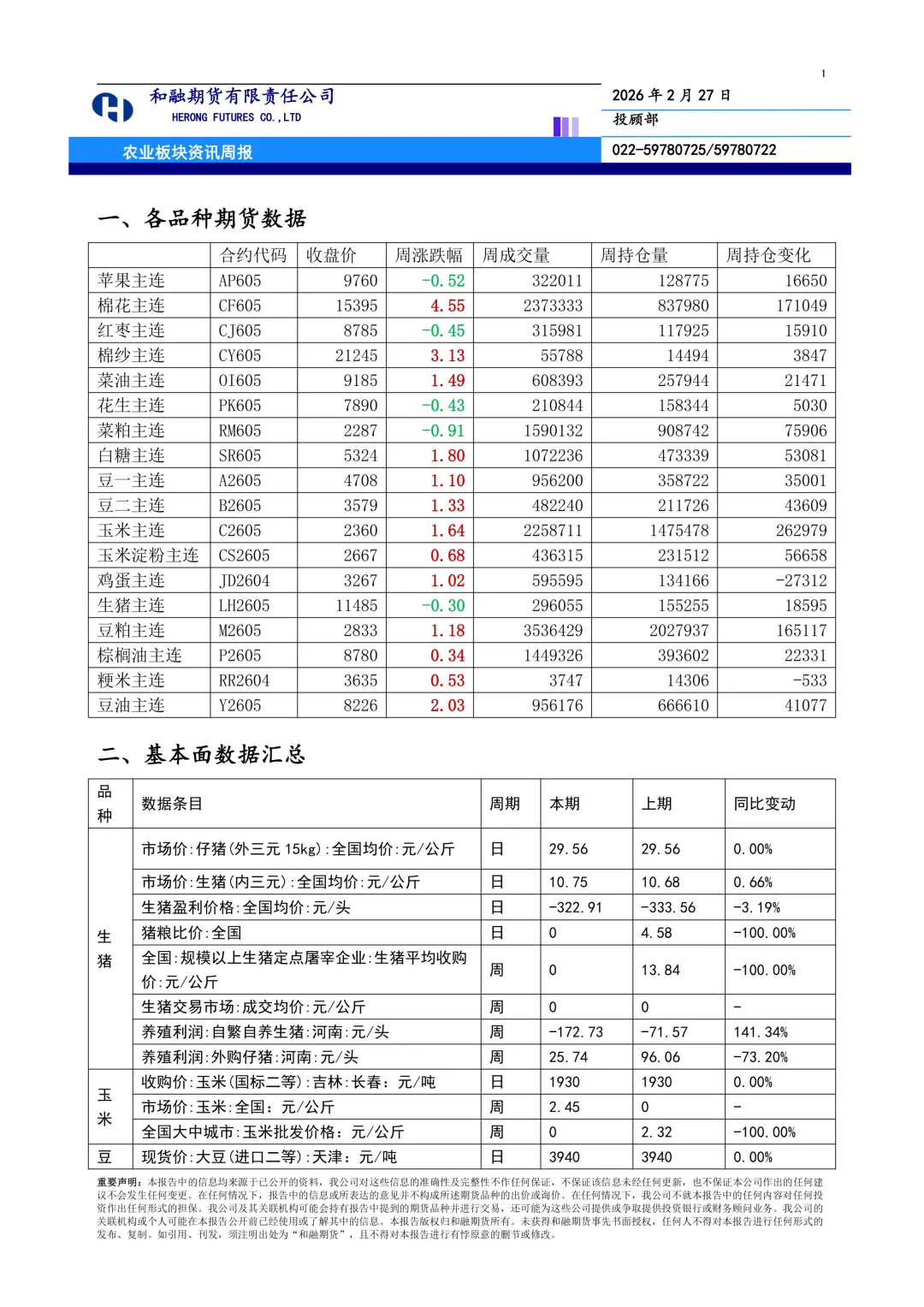 >农业期货数据资讯