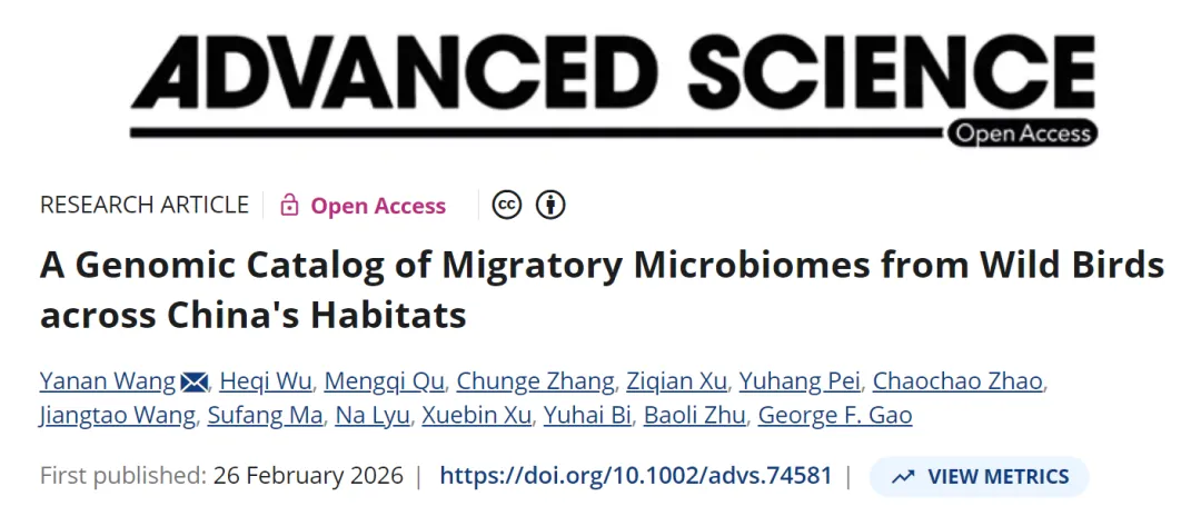 近日,河南农业大学动物医学院国家动物免疫学国际联合研究中心传来重磅学术成果,王亚楠教授团队在国际顶级学术期刊《Advanced Science》(中国科学院一区)上发表了题为“A genomic catalog of migratory microbiomes from wild birds across China’s habitats”的研究论文。这项研究立足中国作为东亚—澳大利西亚、中亚及西亚—东非等关键候鸟迁徙路线交汇区的独特地理优势,深入探讨了候鸟在长途迁徙中作为微生物及耐药基因潜在携带者与传播者的复杂角色。