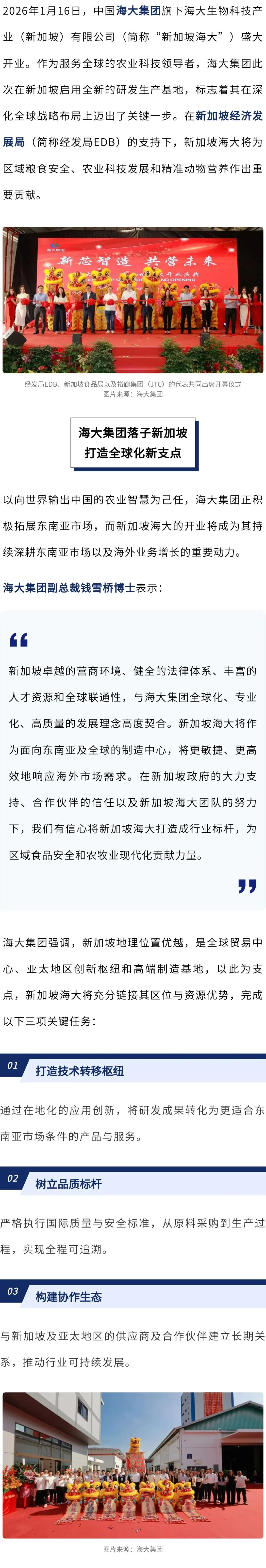 >海大集团新加坡基地启用:中国农业科技巨头落地狮城
