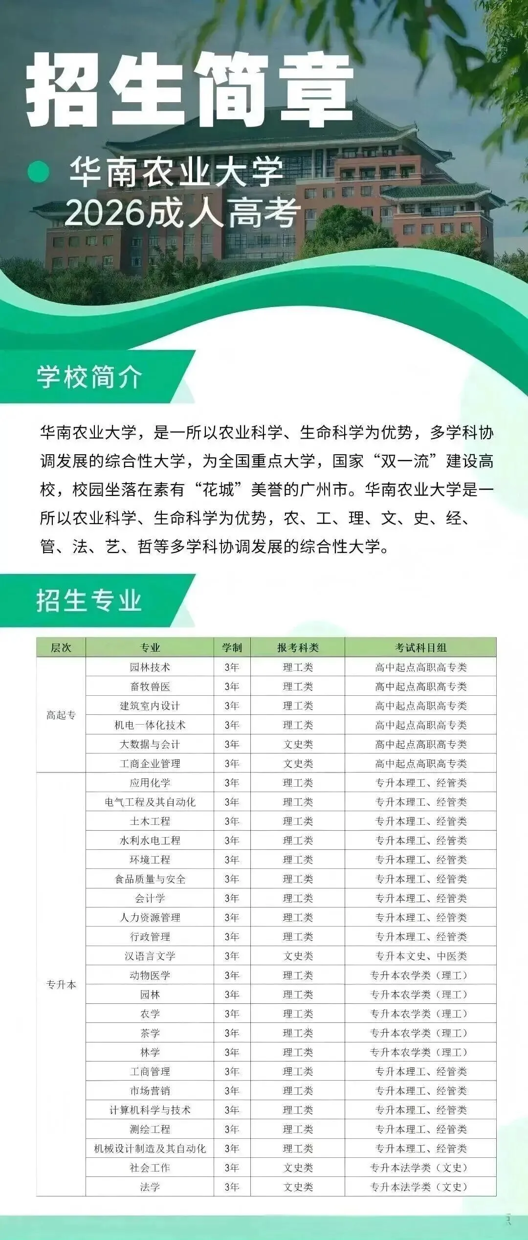 ✨华南农业大学2026年成人高考
