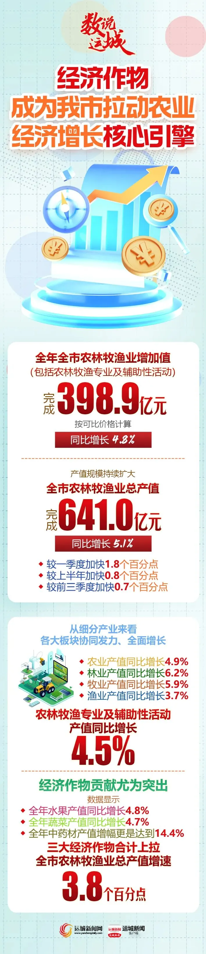 2025年,我市农林牧渔业经济运行呈现稳中有进、提质增效的良好态势,产值增速逐季攀升,经济作物成为拉动农业经济增长的核心引擎。
