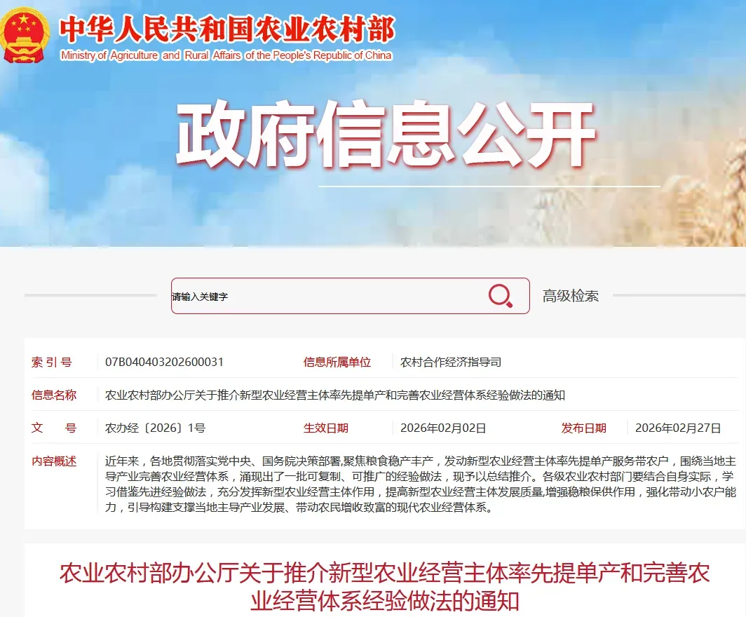 各级农业农村部门要结合自身实际,学习借鉴先进经验做法,充分发挥新型农业经营主体作用,提高新型农业经营主体发展质量,增强稳粮保供作用,强化带动小农户能力,引导构建支撑当地主导产业发展、带动农民增收致富的现代农业经营体系。