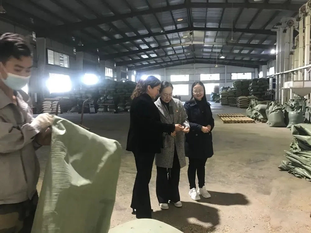 调研中,施文艳主席实地考察了基地咖啡加工生产的过程,并听取了负责人李春梅关于基地生产经营、产品销售、带动就业创业等相关情况的介绍。