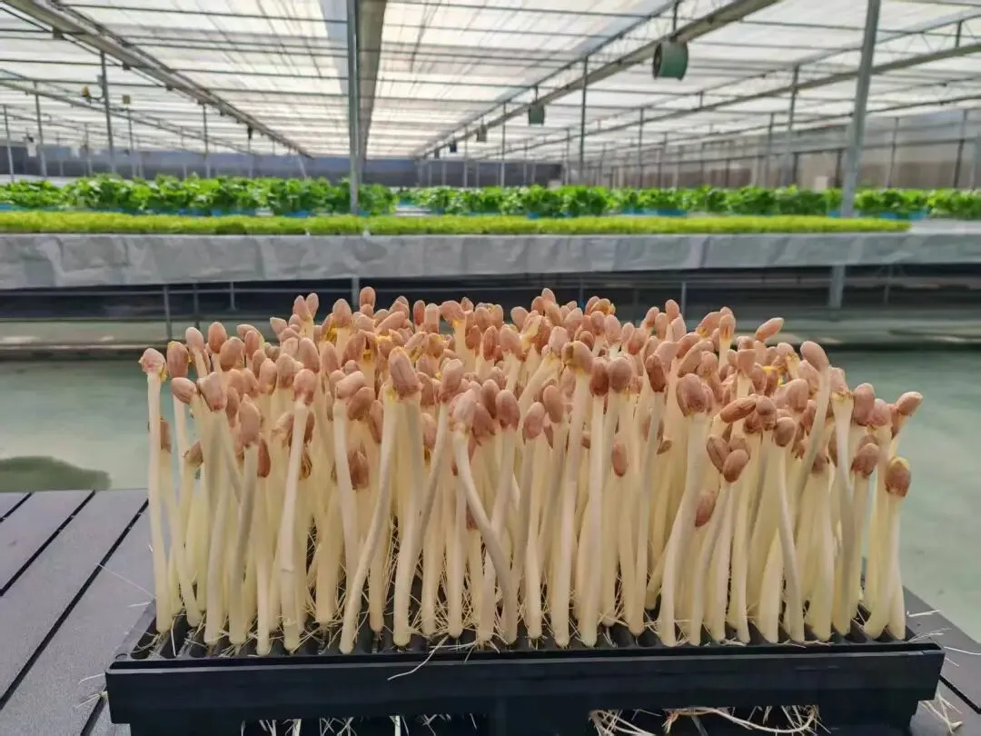 “按大食物观和百姓对营养价值高、无污染蔬菜的需求,我们通过大半年研发,生产了无需化肥农药、富含多种微量元素的花生苗等水培芽苗菜,去年下半年一上市就在餐饮店、学校等企事业单位供不应求。”技术负责人张丽说。预计3000多平方米芽苗菜基地运营成熟后,亩均产值可达2万多元,是常规蔬菜的2倍多。