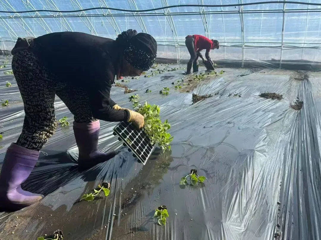 眼下正是大棚果蔬栽植的关键时期,永兴村17座暖棚已全面进入蔬菜瓜果栽苗作业阶段。在温暖湿润的棚室内,村民们三两一组、分工协作,正有条不紊地将香瓜、柿子、辣椒、豆角等嫩绿菜苗精准栽种到垄间。大家扶苗、培土、浇水,动作娴熟细致,一株株充满活力的菜苗整齐挺立,在阳光与沃土的滋养下孕育着丰收希望,也承载着村民们增收致富的美好期盼。