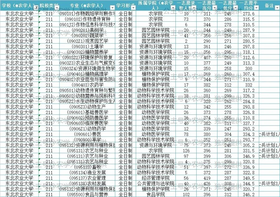 我们整理的农学考研核心数据,包含: