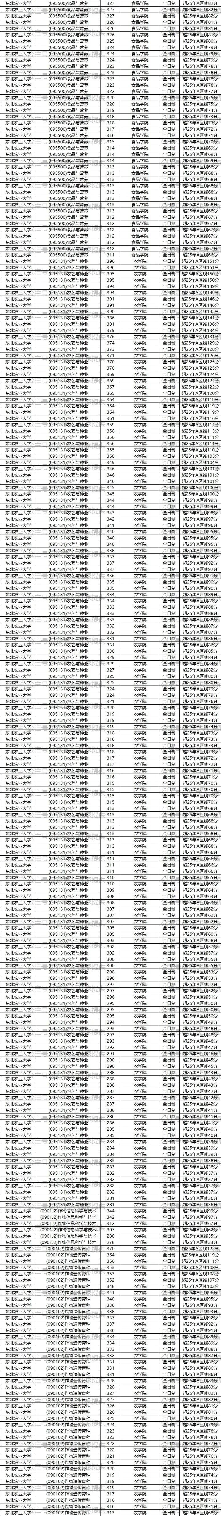 比如安徽农业大学(095131)农艺与种业,(090403)农药学,(090101)作物栽培学与耕作学,(090102)作物遗传育种,(090201)果树学,(090202)蔬菜学,(090401)植物病理学,(090402)农业昆虫与害虫防治,(090501)动物遗传育种与繁殖,(090502)动物营养与饲料科学,(090504)特种经济动物饲养,(090701)林木遗传育种,(090702)森林培育,(090703)森林保护学,(090704)森林经理学,(090706)园林植物与观赏园艺,(090800)水产,(095132)资源利用与植物保护,(095133)畜牧,(095134)渔业发展等专业,23年—25年每一年都招了调剂,那么有90%以上的可能它今年还是会招调剂,那这样的学校就是我们的重点关注对象。