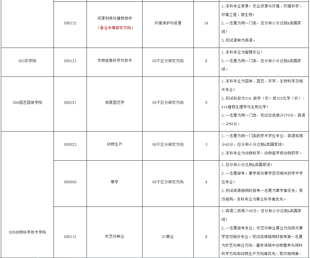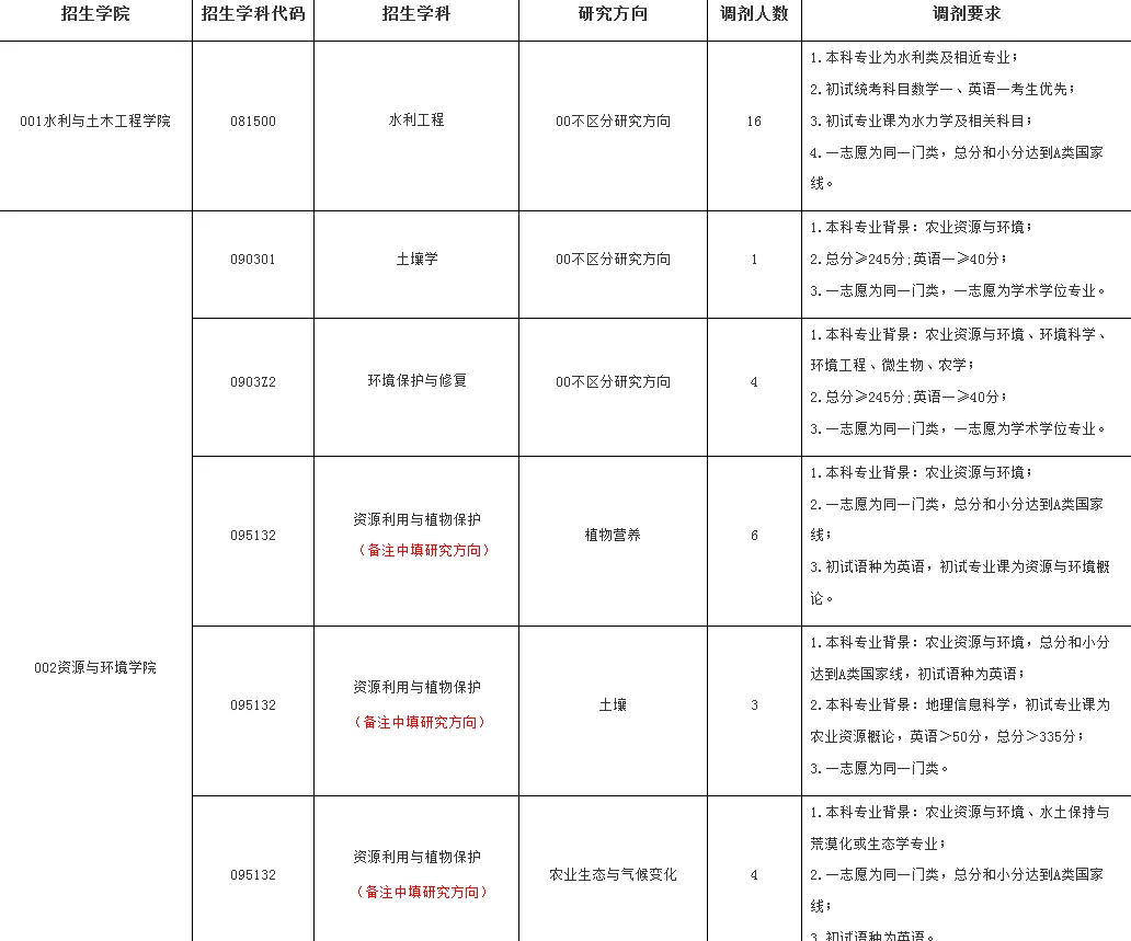 4.报考002资源与环境学院的095132资源利用与植物保护的考生,务必在调剂系统中的备注栏里填写报考研究生方向(植物营养、环境保护与修复、土壤或农业生态与气候变化)。