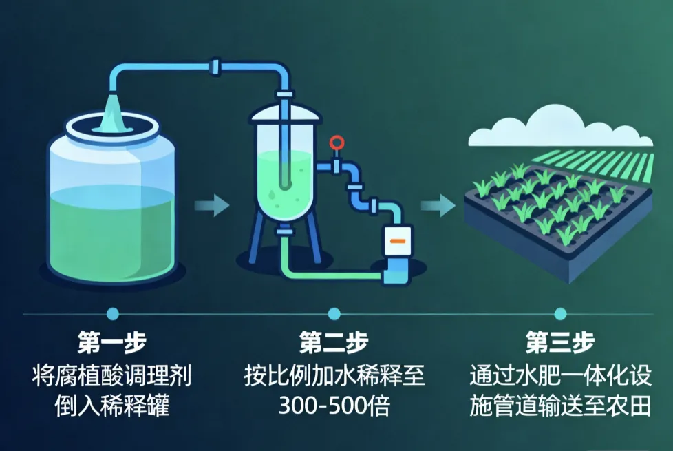 通过测定土壤养分含量现状,根据土壤供肥、作物需肥等因素,结合作物目标产量,确定养分元素施用总量和施用时间,做追肥时,调整该技术载体碱性腐植酸水溶肥使用量,达到养分平衡供应,避免肥料浪费和面源污染。