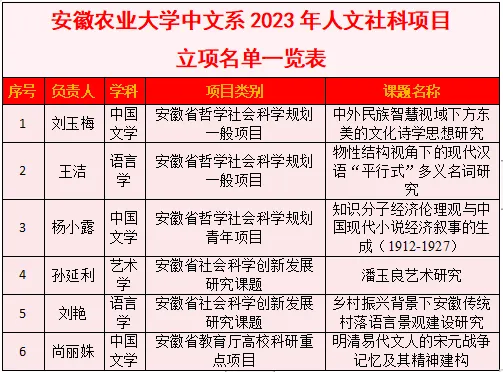 喜报 | 安徽农业大学中文系2023年人文社科项目立项实现新突破