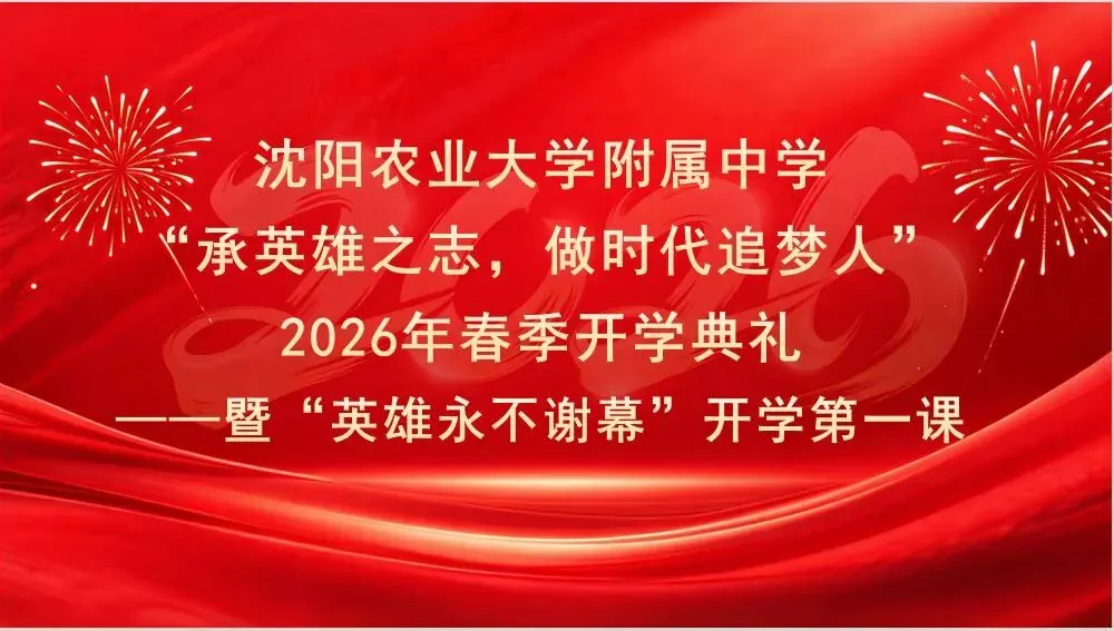 岁序更迭,万物复苏。沈阳农业大学附属中学全体师生欢聚一堂,隆重举行2026年春季学期 “承英雄之志,做时代追梦人” 开学典礼暨 “英雄永不谢幕” 开学第一课,以英雄精神为指引,共赴新学期的美好征程。开学典礼由沈阳农业大学附属中学副校长刘亮亮主持。