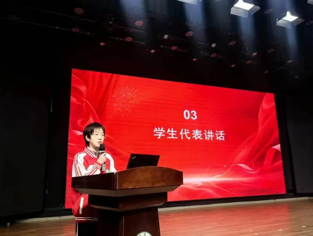 七年一班赵禹淅同学作为学生代表发言,青春的誓言铿锵有力,奋斗的信念真挚热烈。她的发言,道出了全体附中学子对新学期的憧憬与规划,更展现了新时代少年朝气蓬勃、奋勇争先的精神风貌。愿每一位同学都能以梦为马,不负韶华,在2026年的春光里,以拼搏为笔,书写属于自己的青春华章。