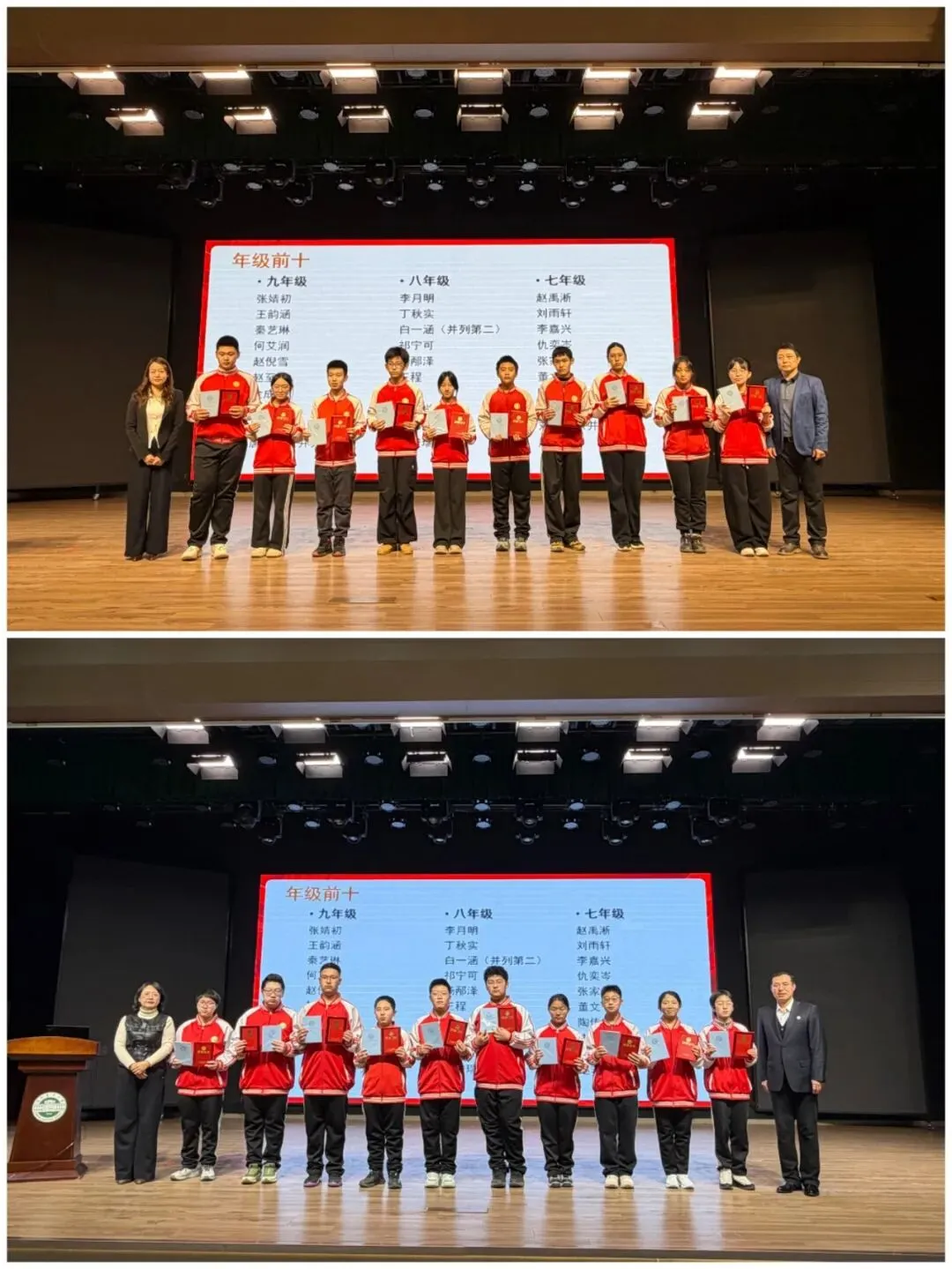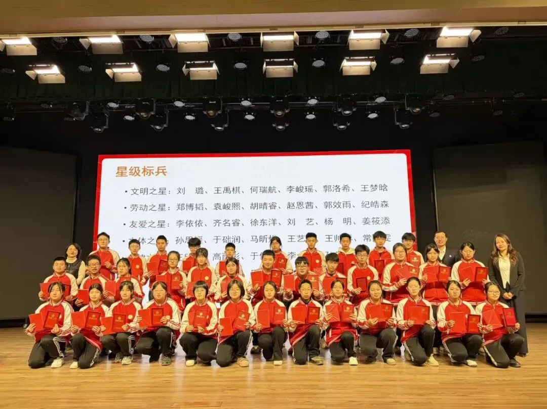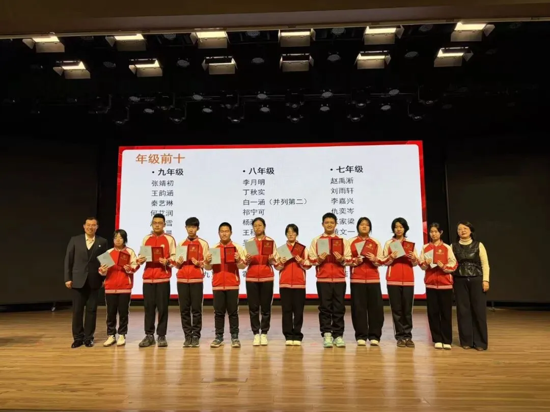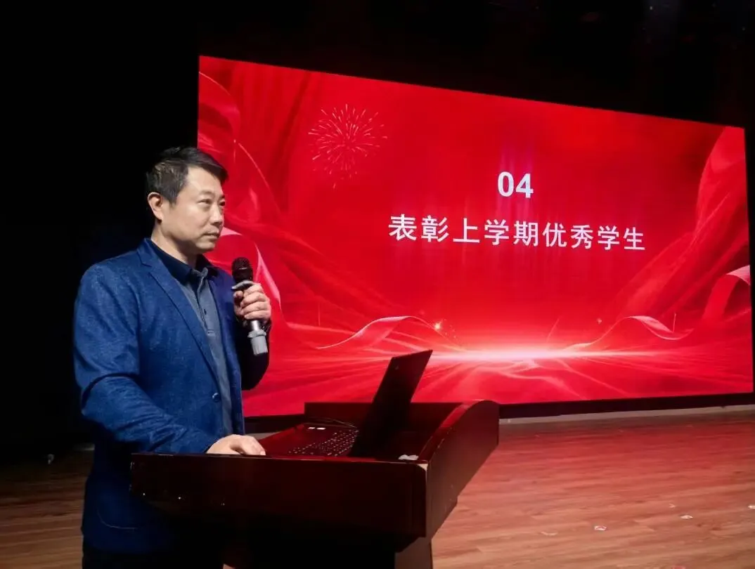 榜样的力量,是前行的光。在上一学期的学习生活中,我校涌现出一批德智体美劳全面发展的优秀学子,他们以品德润身、以智慧启心、以体魄强志、以美感育人、以劳动立行,生动诠释了 “自强不息,追求卓越” 的精神。典礼上,姜策副书记宣读受表彰学生名单,为优秀学子们送上肯定与祝福。