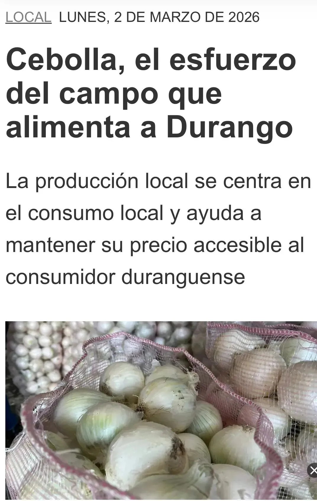 他来自圣胡安德尔里奥市,解释说在杜兰戈,洋葱一年只种一次,从7月开始, 10月、11月和12月收获。然而,杜兰戈洋葱的一个关键特点是其化学成分含量极低,这使它们成为当地特有的品种。