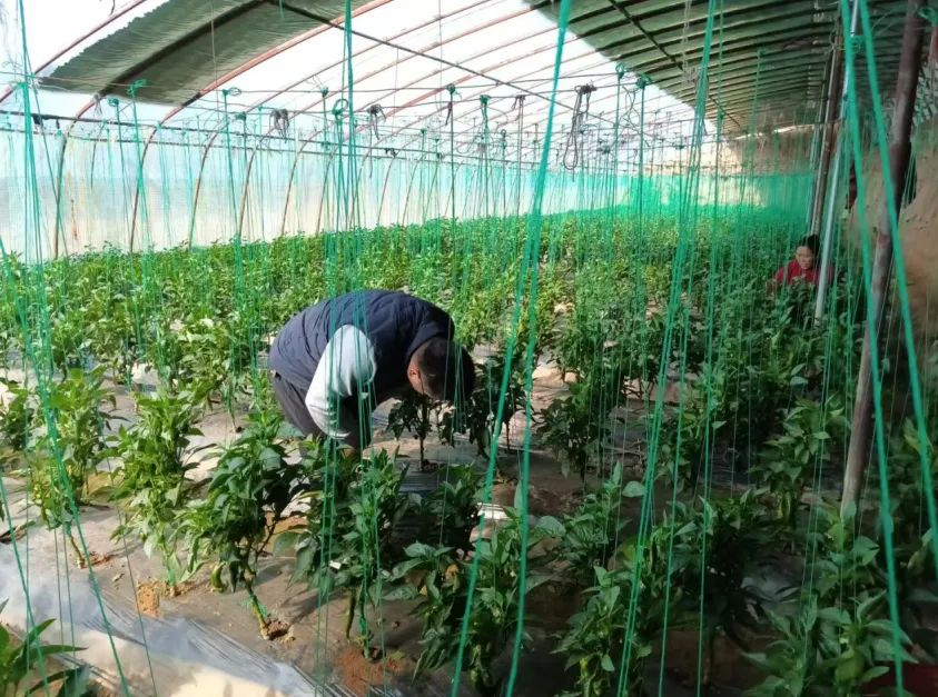 在旱地湾的设施大棚内,也是一片忙碌的景象。一株株青翠的辣椒在温暖的环境中成长,菜农们来回穿梭忙着采摘辣椒。“这是乐都特色的‘大肠’辣椒,口感特别好,一斤能卖到20元”一位村民高兴地说道。
